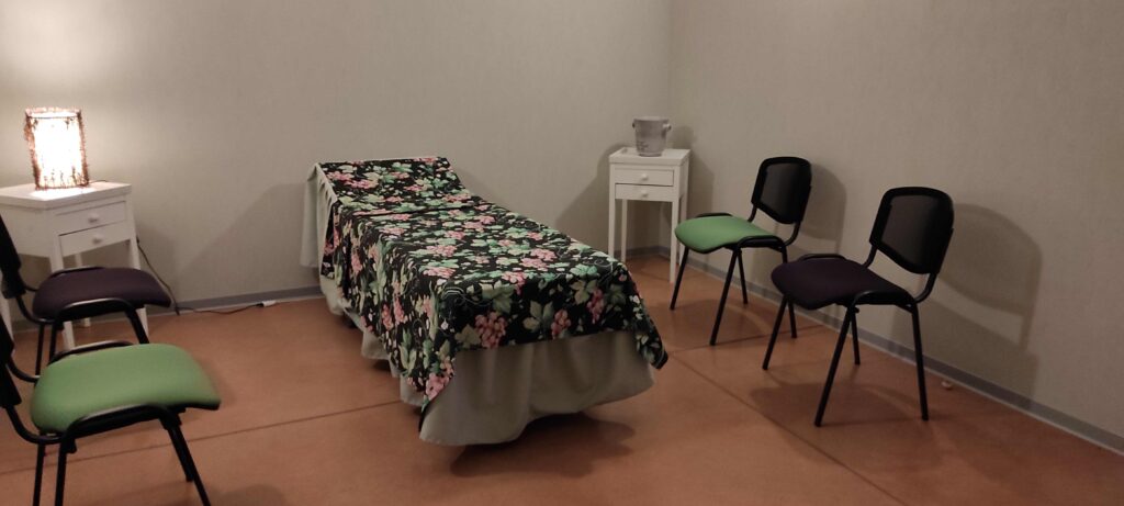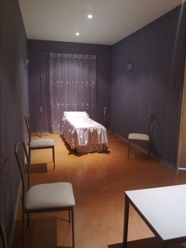 Deux salons sont à disposition des familles : le salon Pêche et le salon Prune, de 15 m² chacun. Les défunts sont préparés et habillés dans la partie technique avant leur mise en présentation dans un des salons.
